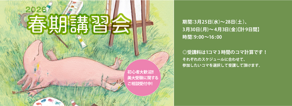 東京藝術大学、武蔵野美術大学、多摩美術大学などの難関美大は、早めのスタートが肝心です。まずは一度相談にいらっしゃってください。